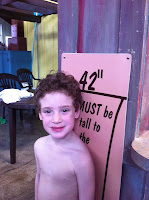 This is a view of the indoor water park (that's Rachel, Charlotte and Samantha, all in black swimsuits). There was a three story climbing area full of ways to trap and expel the water flowing through it. The ladies could divert the water into buckets and hoses and dump it on passers by below. At the top there were slides to come down and do it all over again. There was a lazy river with innertubes and hot tubs for the rest of us. Jay Michael was tall enough to go down all the slides alone. He was quite excited to be taller than the line.